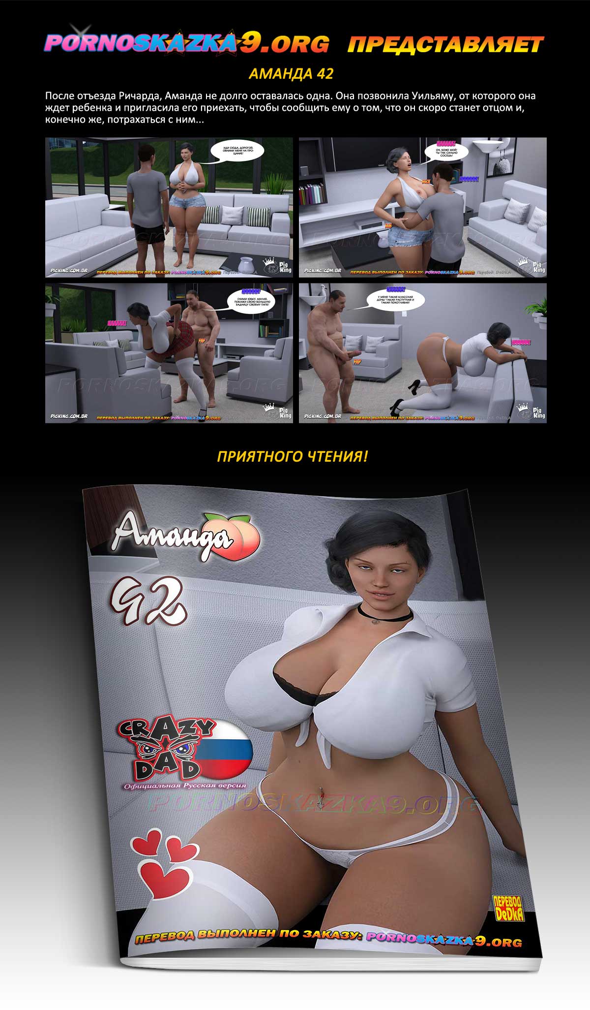 Порно комикс Аманда 42. После отъезда Ричарда, Аманда не долго оставалась одна. Она позвонила Уильяму, от которого она ждет ребенка и пригласила его приехать, чтобы сообщить ему о том, что он скоро станет отцом и, конечно же, потрахаться с ним…